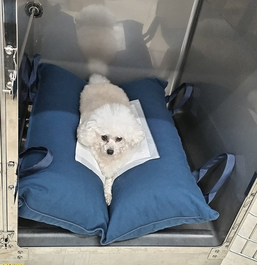 動物病院で入院していた寝たきりのワンちゃんの為、病院のスタッフさんが数時間ごとに床ずれしないよう姿勢を変えていました。 中型犬以上になると重労働。「何とかワンちゃんもスタッフも楽に介護が出来ないかな」そんな現場の悩みから…