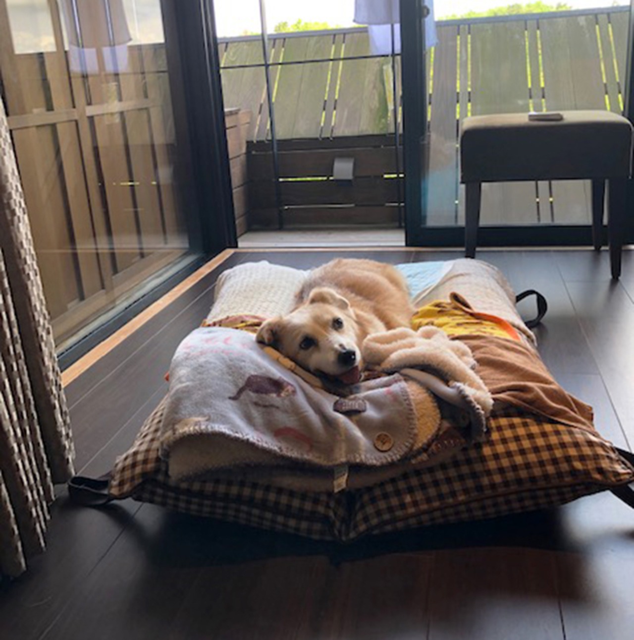 獣医さんと親しいおふとん屋さんが老犬の為に共同開発し生まれたのが介護用クッションRAKU²(らくらく)です。