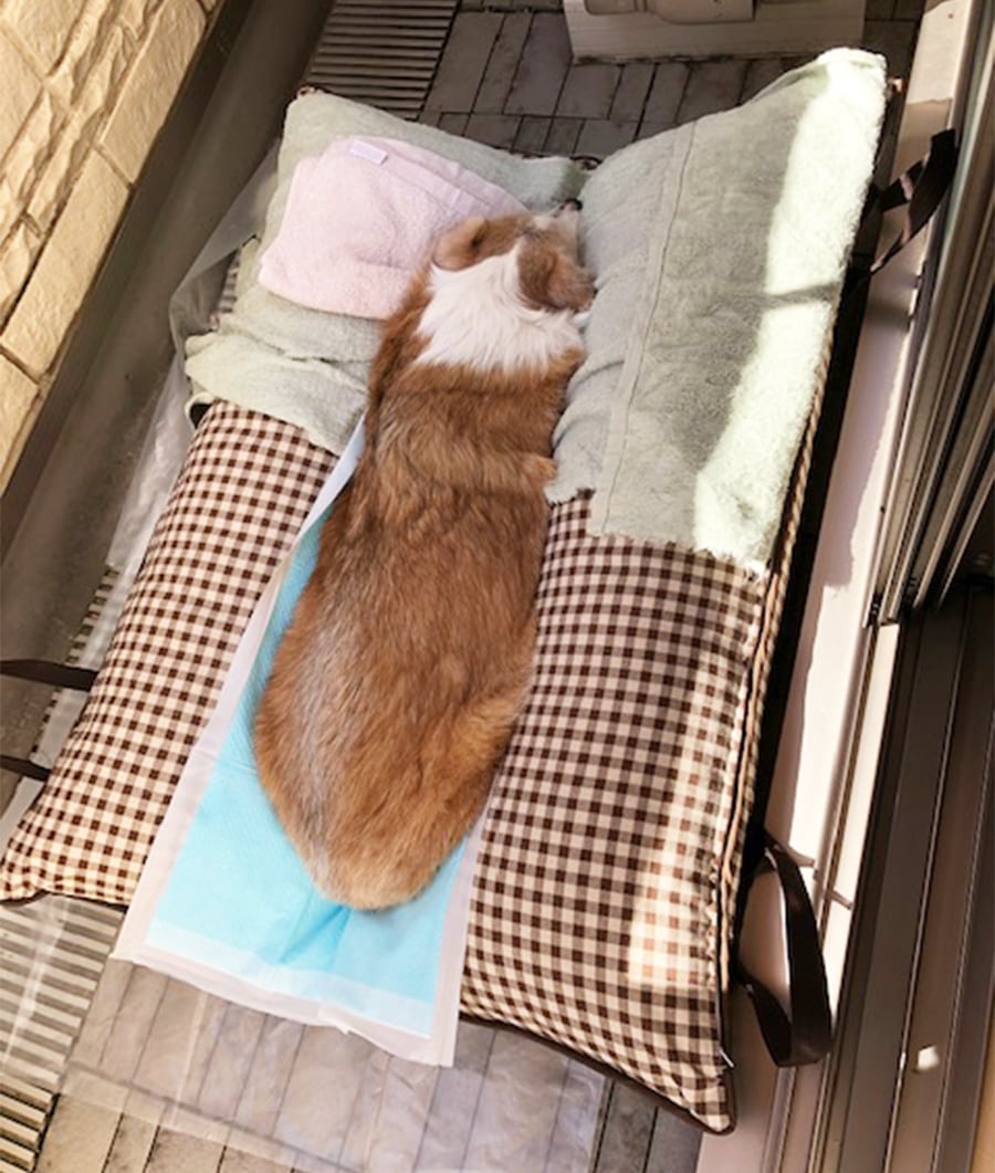 介護が必要になった動物は、体を横にして寝たきりになってしまうと、伏せで体が立っている状態に比べて一気に体が弱まります。介護のポイントとしては「床ずれ」の防止に加えて、「伏せて体が立っている状態を維持すること」も非常に重要です。